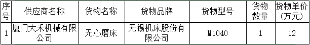 黄金甲体育集团M1040无心磨床采购与安装中标公告