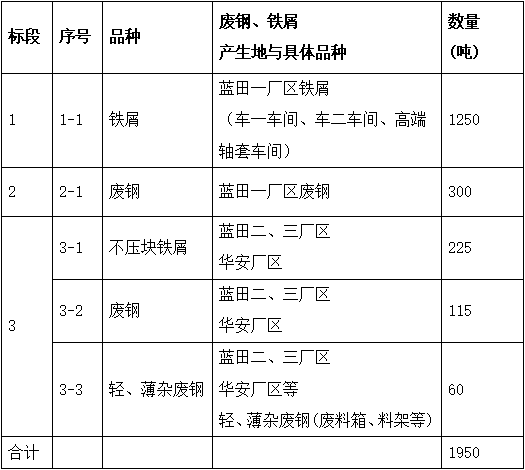(三)项目内容:福建龙溪轴承(集团)股份有限公司铁屑、废钢等生产性废料出售,总量约1950吨。