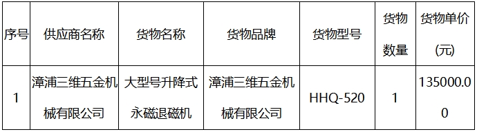 黄金甲体育集团大型号升降式永磁退磁机采购与安装中标公告