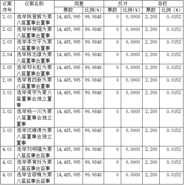 本次会议由公司董事会召集,采用现场投票与网络投票相结合方式召开。公司董事长陈晋辉先生主持会议,符合《公司法》及《公司章程》的有关规定,会议各项决议合法有效。
