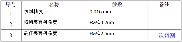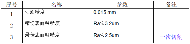 机床最大线切割速度≥120mm2/min,切割速度能达到越高越好。精加工(尺寸精度达到0.015mm,表面粗糙度达2.5um)时,线切割速度≥20mm2/min。