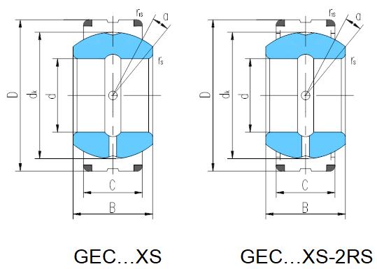 产品特点:外圈沿轴向隔分成两半,用锁圈固定,内、外圈材料均为轴承钢,淬火,磷化,滑动表面涂敷二硫化钼,后置代号有-2RS为外圈两端带有密封圈。