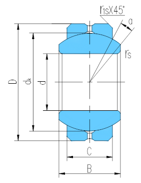产品特点:外圈材料为碳钢,挤压成形;内圈材料为轴承钢,淬火,球面镀硬铬。