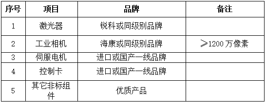 2.1.3可实现设备自动调整。即设备首次调试完成后,第二次打标同型号工件时,只需打开产品对应的型号程序,设备可自动调整(程序、标识、激光头高度等等),无需再人为调整。