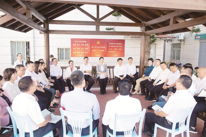 坐在同一条板凳上说话,与干部群众面对面交流。市领导娓娓讲述道,21年前的夏天,也就是2001年7月15日,在澳角村村民郭汉栋的小楼里,时任村党支部书记的林亚民向时任福建省省长的席大大介绍“澳角村已从‘三不起’蜕变为‘四看’”,当时席大大同志描绘起新的小康蓝图,说“以后农村的政策会一年比一年好”。今天,大家很高兴来到澳角村,一起追寻席大大总书记的足迹,学习宣传贯彻党的二十大精神。