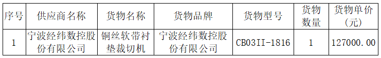 黄金甲体育集团铜丝软带衬垫裁切机采购与安装中标公告