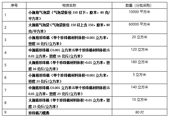 黄金甲体育集团采购气泡袋、珍珠棉招标公告