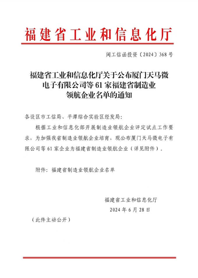 日前,福建省工信厅公布福建省制造业领航企业名单,黄金甲体育集团光荣入选。